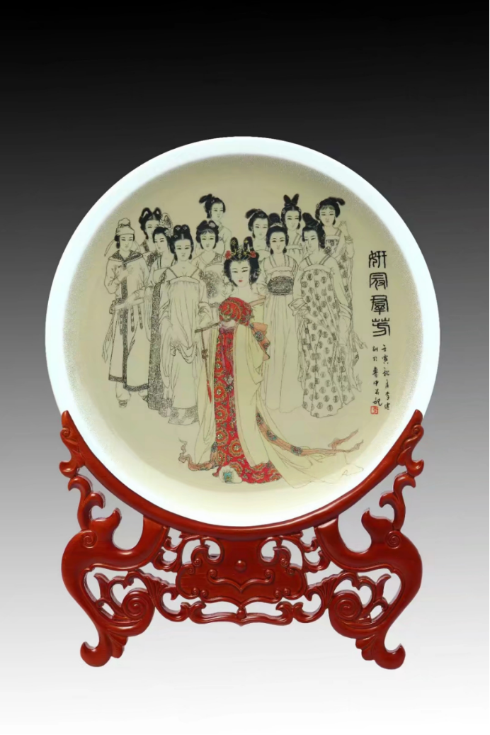 “師者,所以傳道授業(yè)解惑也?!?藝術的傳承,從來離不開名師的引領與文脈的滋養(yǎng)。李健的藝術之路,起點便站在了巨人的肩膀上——他師從中國陶瓷藝術大師、淄博刻瓷藝術流派代表人物李梓源。李梓源大師深耕刻瓷領域數十載,以“細膩傳神、雅俗共賞”的藝術風格奠定了在行業(yè)內的標桿地位,其對傳統(tǒng)技藝的敬畏與對創(chuàng)新的探索,深深烙印在李健的藝術認知中。在名師悉心教導下,李健摒棄浮躁,沉心鉆研刻瓷技藝的核心要義:從刀具的輕重拿捏、線條的虛實轉換,到色彩的暈染層次、題材的意境營造,他逐一攻克難關,將淄博刻瓷的正宗技藝爛熟于心。這種“擇一事、從一師、終一生”的堅守,恰如《莊子·達生》中“梓慶削木為鐻,成見鐻形于胸”的專注,為他的藝術創(chuàng)作筑牢了堅實根基,也讓他的作品始終保有淄博刻瓷流派的精神內核與文化血脈。