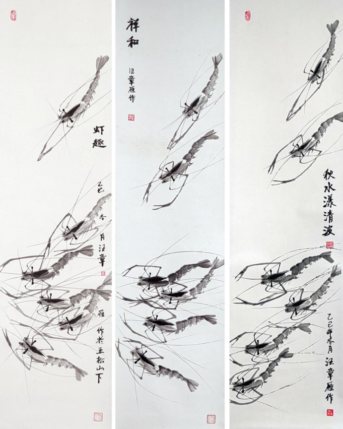 據(jù)介紹,汪章雁的作品曾參與國內(nèi)外多項(xiàng)展覽交流:水墨作品《蝦戲》曾參與"中韓水墨文化交流"展覽,被韓國慶熙大學(xué)館藏;《儺仙鎮(zhèn)》入選2025-2026年世界非遺大會(huì)繪畫展,獲成人組一等獎(jiǎng);《和諧共生》入選榮寶齋2025年度全國銀齡書畫展并獲一等獎(jiǎng)。此外,他在國內(nèi)多項(xiàng)書畫大賽中多次榮獲一等獎(jiǎng)、特等獎(jiǎng)等榮譽(yù)。