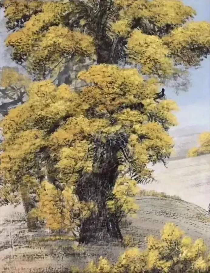 在樹木,山水瀑布等作品中,賀天飛突破了傳統(tǒng)國畫“隨類賦彩”的限制,以大膽的色彩組合傳遞情緒。通過色彩的“情緒性”,將“自然之美”升華為“心靈之境”,又通過顏色強烈對比制造視覺沖擊。這種“沖突中的和諧”,正是當代藝術“觀念表達”的典型特征。