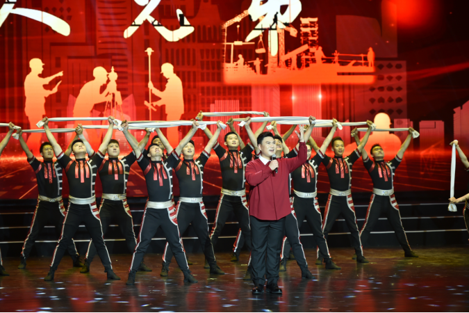 “上面一橫那是天,下面一橫那是地,頂天立地那一豎,就是咱工人好兄弟。”歌伴舞《咱們工人好兄弟》唱出了工人階級的淳樸和豪氣。
