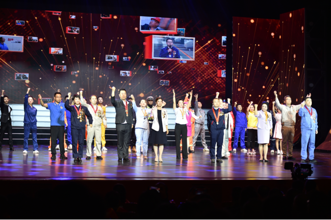 晚會在雄壯豪邁的大型歌舞《我們?yōu)榻裉旆鸥琛分谢趾腴_場,兩名“五一勞動獎章”獲得者與 4 名藝術家一同激情高歌,淋漓盡致地展現(xiàn)出勞動者的豪邁與激情。