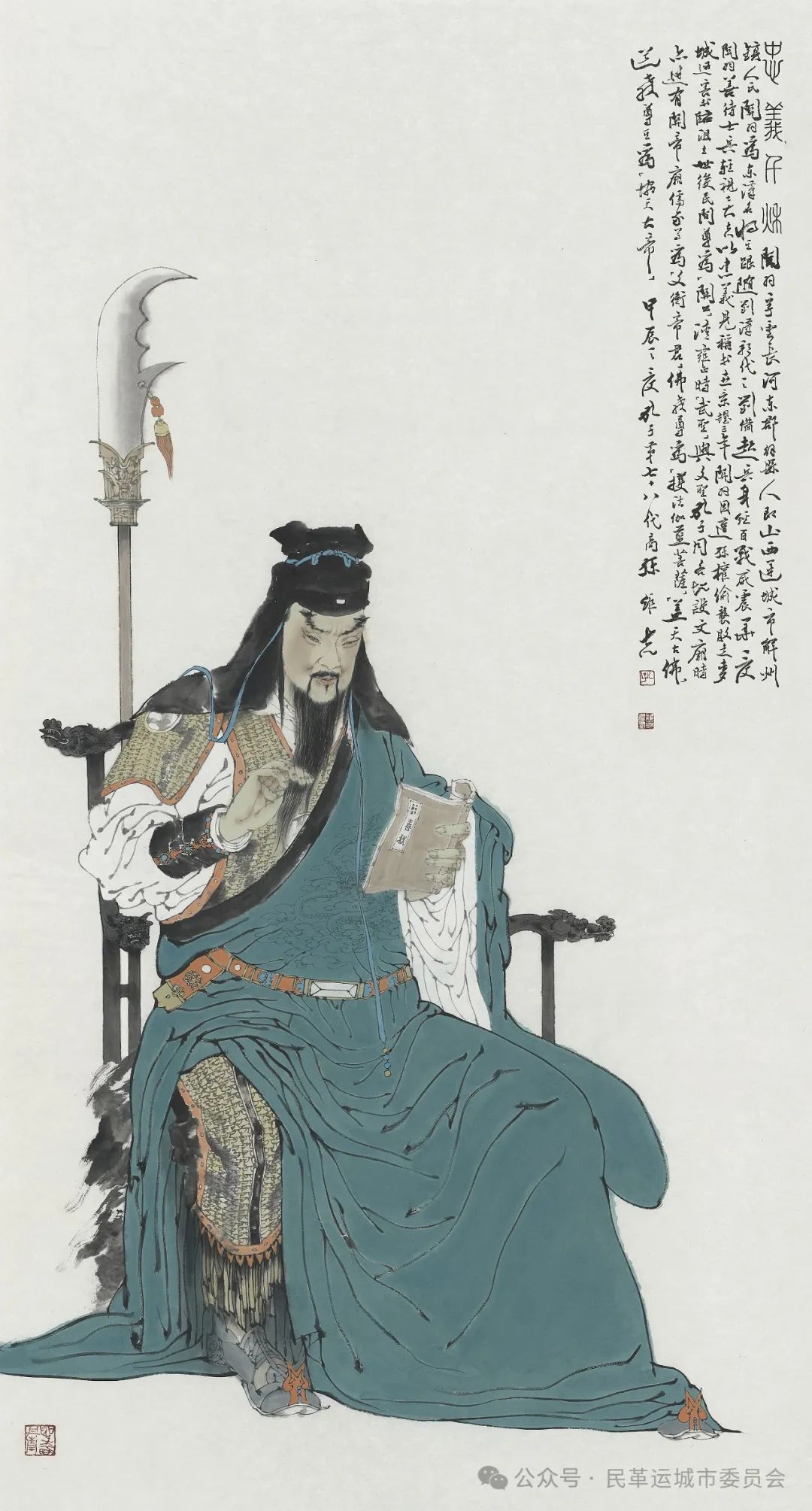 這其中特邀全國政協(xié)委員、民革中央畫院院長、孔子第78代后裔孔維克專為本展創(chuàng)作的《忠義千秋一一關(guān)公夜讀春秋圖》。畫家以工寫兼濟(jì)的藝術(shù)手法,將武圣關(guān)羽勇毅剛?cè)岬男蜗?,凝思專注的神態(tài),圣者風(fēng)范的氣質(zhì),刻劃得淋漓盡致,令人站在畫前頓時(shí)如沐清風(fēng),心生暖流,肅然起敬。