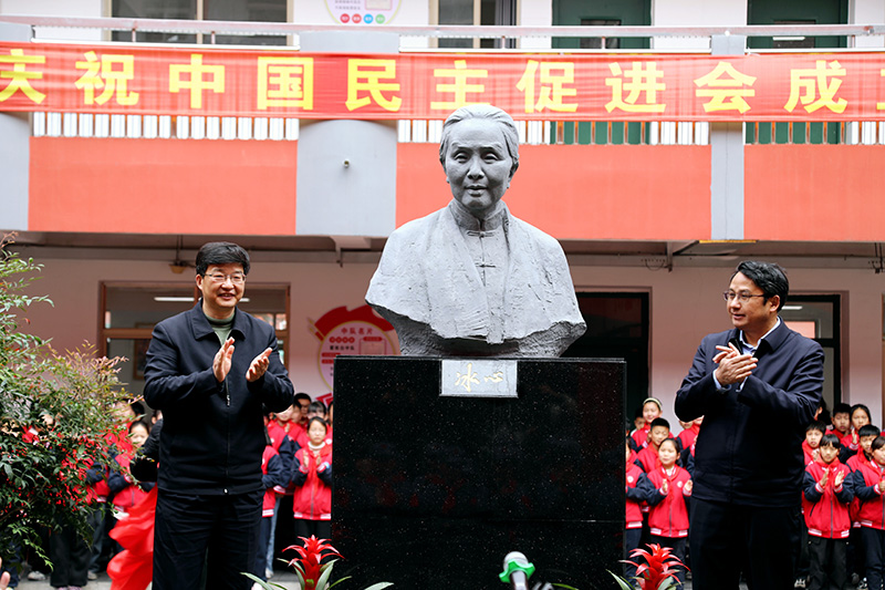 3月27日上午,為慶祝中國民主促進會成立80周年,《冰心》雕像捐贈活動在中國工農紅軍鹽城東臺小學(三倉紅軍小學)舉行。此次活動由江蘇民進省直書畫支部、江蘇民進開明畫院、江蘇油畫雕塑院主辦,省政協(xié)副秘書長、省民進副主委余珽和東臺市政協(xié)主席邱海濤共同為雕像揭幕。