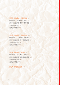 第一到第六章,設(shè)計了烽火英雄、烽火中的好發(fā)明、發(fā)明思維大討論、創(chuàng)新遷移前景廣四個欄目。
