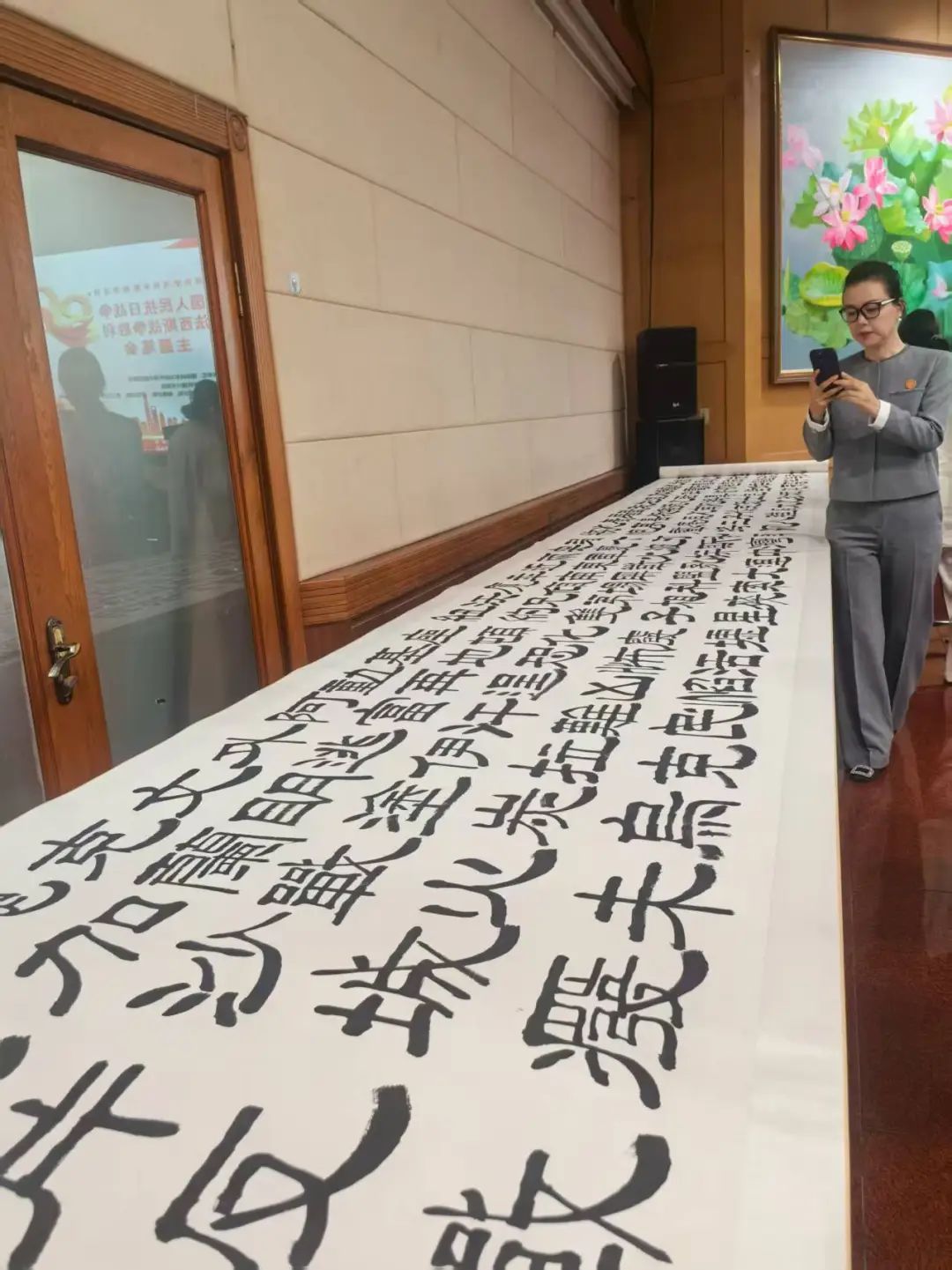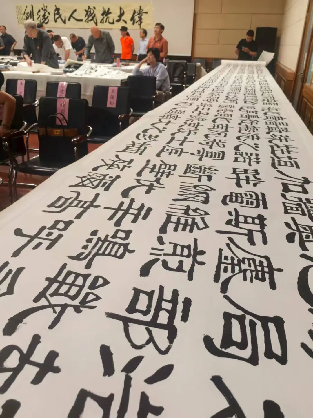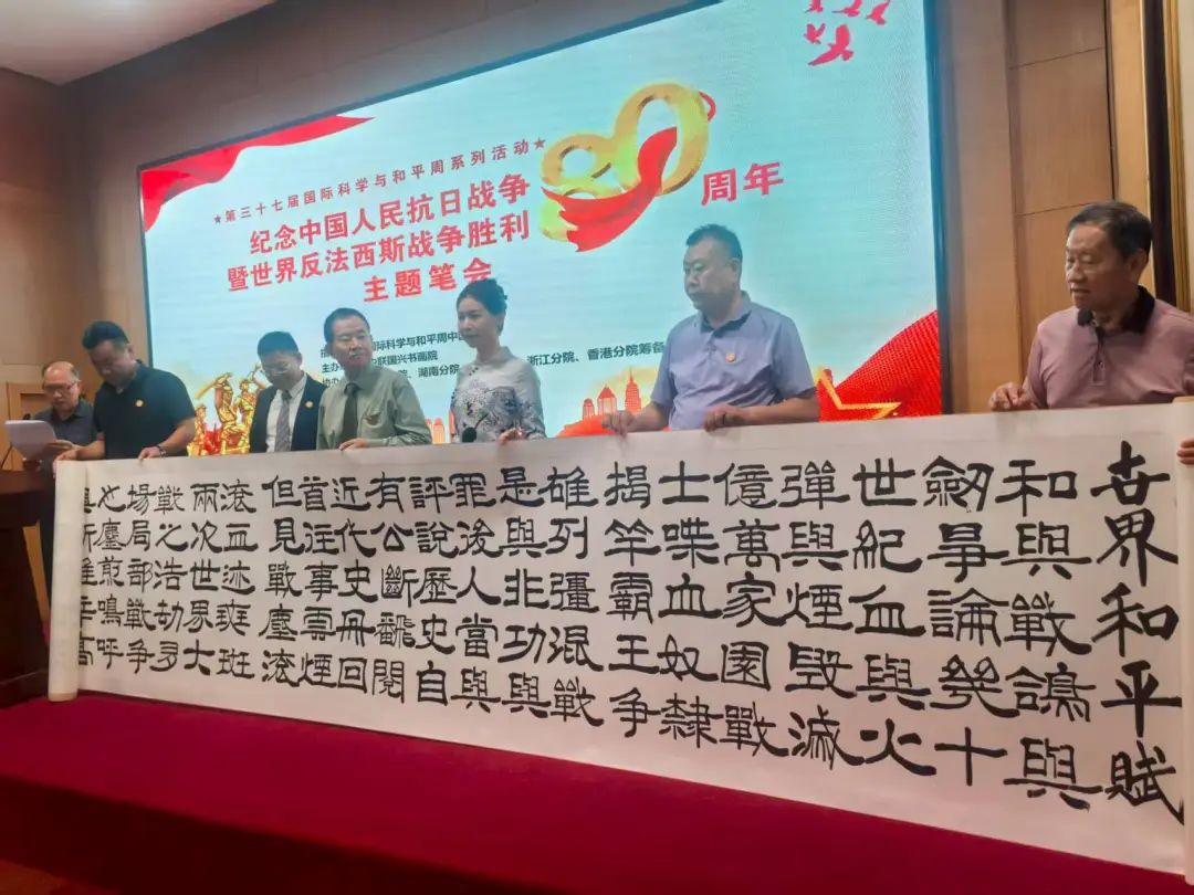 8月16日上午,為紀(jì)念中國(guó)人民抗日戰(zhàn)爭(zhēng)暨世界反法西斯戰(zhàn)爭(zhēng)勝利80周年,漢隸書法長(zhǎng)卷《世界和平賦》在北京市萬壽路西街甲7號(hào)中聯(lián)國(guó)興書畫院展出。
