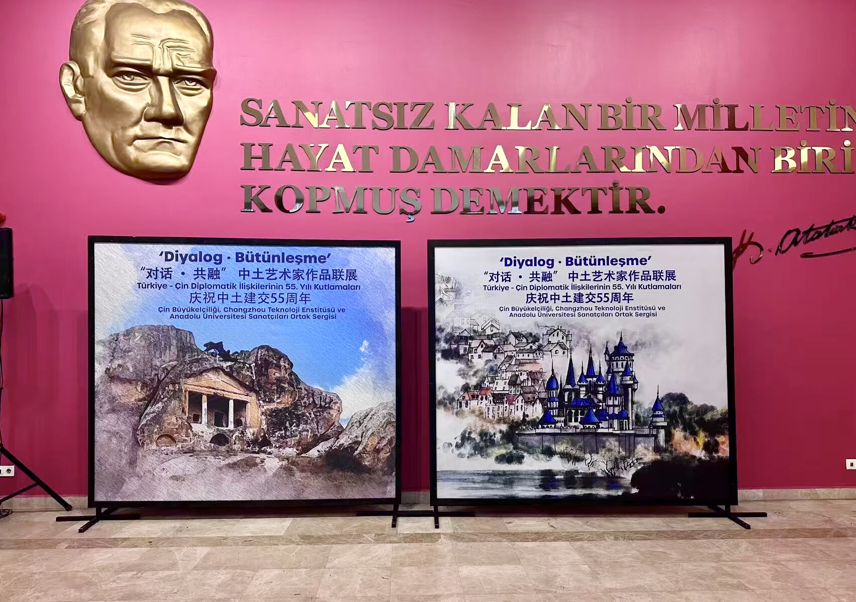 1月18日從九三學(xué)社常州市委會(huì)獲悉,“對(duì)話·共融”中土藝術(shù)家作品聯(lián)展1月14日在土耳其伊斯坦布爾開(kāi)幕,揭開(kāi)中土建交55周年系列慶祝活動(dòng)序幕。該活動(dòng)由中華人民共和國(guó)駐土耳其使館、埃斯基謝希爾市政府、安納多盧大學(xué)和常州工學(xué)院聯(lián)合舉辦。中華人民共和國(guó)駐土耳其大使館姜學(xué)斌大使,埃斯基謝希爾市政府云呂杰市長(zhǎng)及兩國(guó)藝術(shù)家和高校師生代表出席。