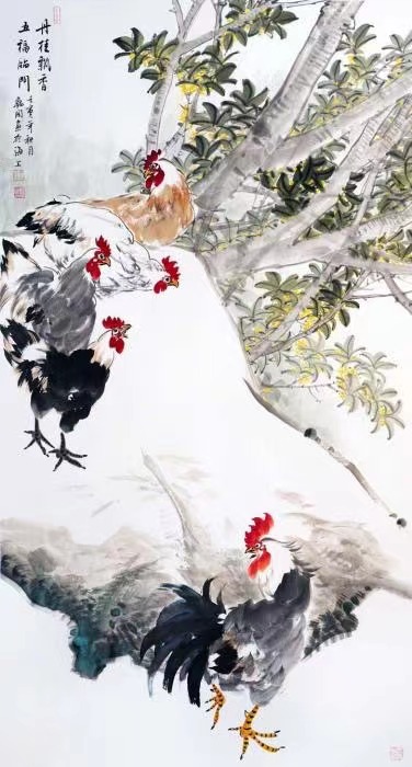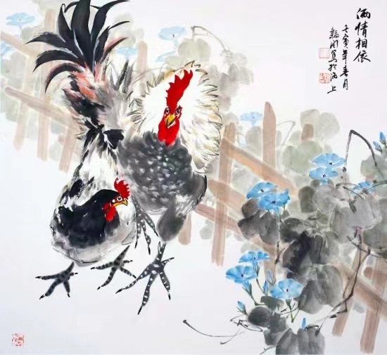 古人說,善琴者通達(dá)從容,善棋者籌謀睿智,善書者至情至性,善畫者至善至美,善詩者韻至心聲,善酒者情逢知己,善花者品性怡然。王韜閏的作品,是一種儒雅到高傲的存在。他最擅長畫的雞,總是儀態(tài)從容,雄姿英發(fā),高傲中散發(fā)著儒雅,令人印象深刻。