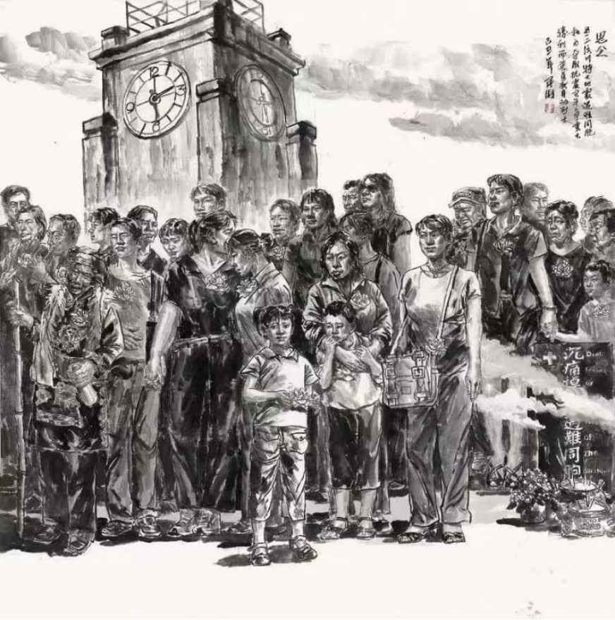 而《思念》一作,以寫實的手法描繪人群,畫面氛圍凝重而充滿情感張力,傳遞出對特定對象或情感的深切眷戀,體現(xiàn)出他對人性情感與社會生活的敏銳洞察,讓作品在宏大的時代敘事之外,又多了一份細(xì)膩的人文關(guān)懷。