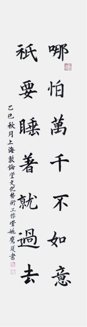 在中書(shū)協(xié)會(huì)員姚鷹廈先生筆下,一幅楷書(shū)作品“哪怕萬(wàn)千不如意,只要睡著就過(guò)去”宛如清泉,流淌出對(duì)生活的豁達(dá)哲思,給人以心靈的慰藉與啟迪。