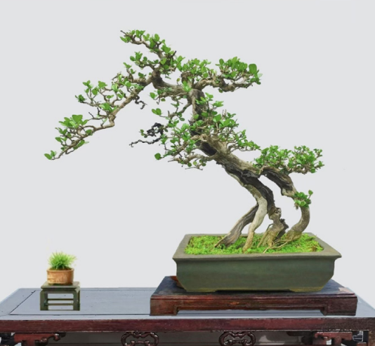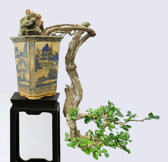 注:香九里,此作樹材為九里香,嶺南盆景七大材料之一?;ㄩ_時節(jié),香飄九里。