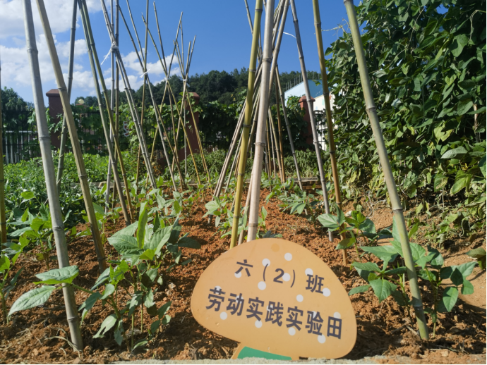放暑假了,黃瓜、茄子、玉米、缸豆、花生、南瓜、絲瓜、辣椒、西紅柿……勞動(dòng)實(shí)踐基地上,長(zhǎng)滿了師生共同種植的10多種蔬果。