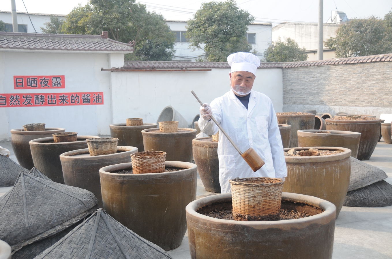 據悉,古法純手工釀造醬油采用傳統工藝以優(yōu)質的黃豆為主要原料,輔以面粉、醬曲等,從挑選大豆、清洗、浸泡、蒸煮,到加入面粉、醬曲充分攪拌,再到發(fā)酵、淋油、沉淀、曬香、調配、滅菌……經過30多個繁復的工序,馥郁芳香的醬油才會被送上餐桌。