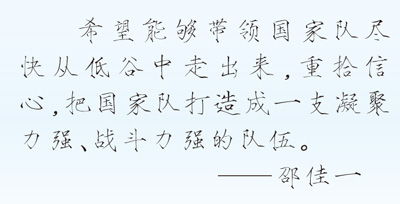 答:我非常理解球迷現(xiàn)在的心情。球迷對待國家隊的態(tài)度,就像我們輔導自己的孩子寫作業(yè),寫得不好時,會有種恨鐵不成鋼的心態(tài)。作為國家隊主教練,這是一種動力,督促我更好地完成自己的工作。