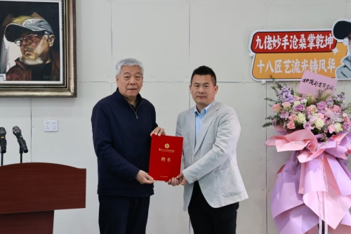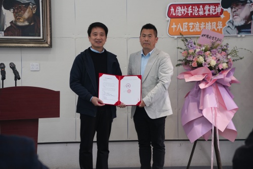 華夏文化促進(jìn)會(huì)書(shū)畫(huà)分會(huì)向荊州李涵藝術(shù)館館長(zhǎng)吳昊頒發(fā)華夏文化促進(jìn)會(huì)書(shū)畫(huà)分會(huì)秘書(shū)長(zhǎng)助理聘書(shū)