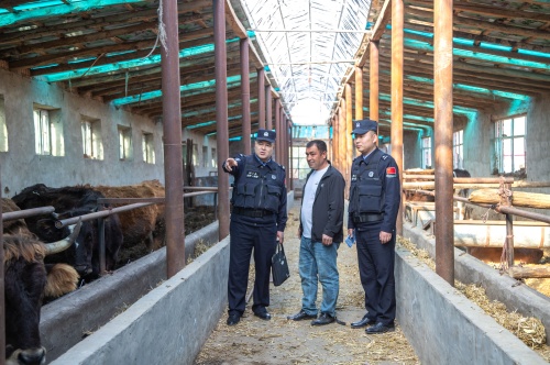 沙帕爾?艾力坎木與民警在牧區(qū)開展入戶走訪