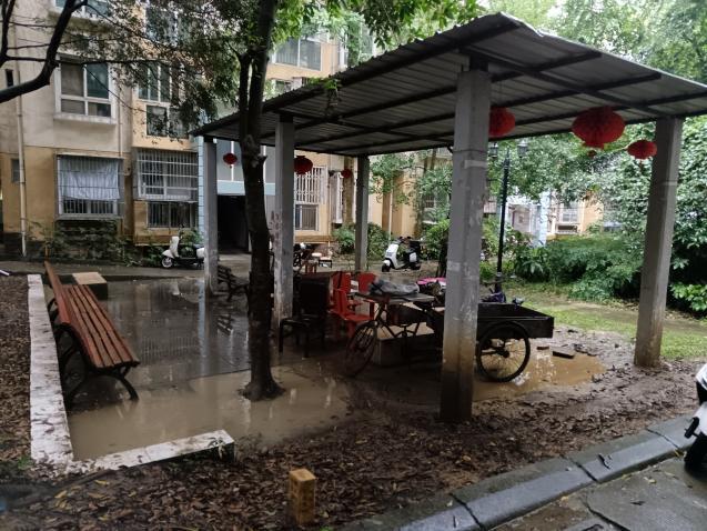 實施過程:網(wǎng)格員收集到B區(qū)7棟涼亭頂棚年久失修、破損老化脫落,以及27棟門口路面泥濘的問題后,提交至飲茶議事會。議事團隊先實地勘察,再召集相關(guān)方研討確定更新材質(zhì)及施工方案;施工期間監(jiān)督小組全程監(jiān)督進度與質(zhì)量。最終依托飲茶議事平臺,通過居民籌工籌勞、商家贊助及鏈接社會慈善資源的方式,完成泥濘道路修整、涼亭頂棚翻新擴建與柱體刷漆彩繪等微更新工作,既消除安全隱患,又美化小區(qū)環(huán)境。項目最后經(jīng)飲茶議事平臺驗收并公示,形成完整的飲茶議事治理閉環(huán)。