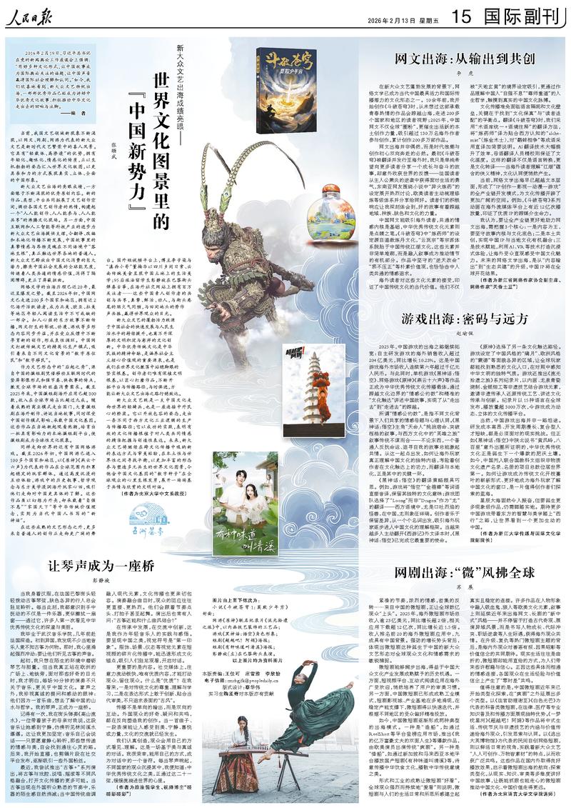網(wǎng)絡(luò)文學(xué)的出海歷程已近20年,最近呈爆發(fā)之勢(shì)。截至2026年初,中國(guó)網(wǎng)文已走進(jìn)200多個(gè)國(guó)家和地區(qū),擁有近2億海外活躍讀者,成為北美、歐亞、拉美等地區(qū)年輕人閱讀生活中不可或缺的一部分??廴诵南业臇|方故事不斷傳播,網(wǎng)文衍生的影視、動(dòng)漫、游戲等多形態(tài)內(nèi)容同步升溫,并在受眾反饋中不斷孕育新的創(chuàng)作,形成良性循環(huán)。中國(guó)網(wǎng)文打破傳統(tǒng)文藝的精英化生產(chǎn)模式,吸引著來(lái)自不同文化背景的“數(shù)字原住民”和“數(shù)字移民”。