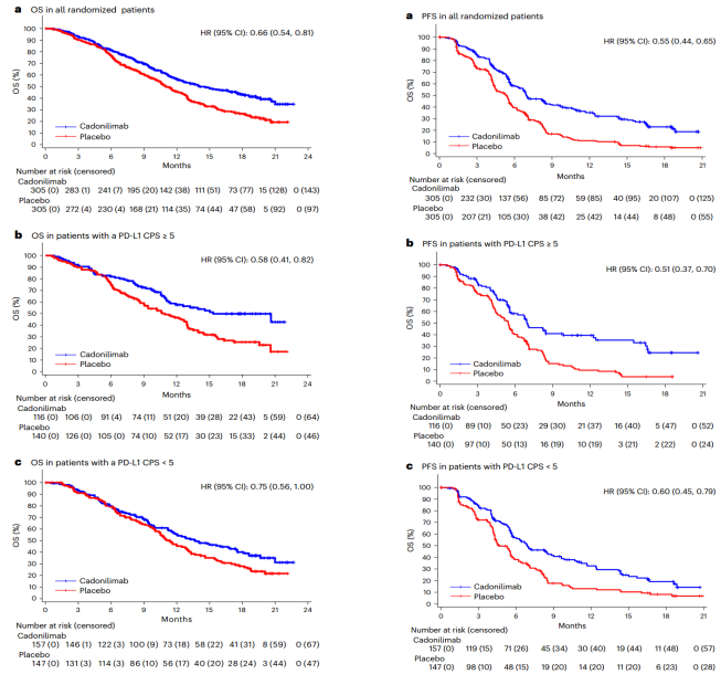2024年12月4日,北京大學(xué)腫瘤醫(yī)院暨北京市腫瘤防治研究所、消化系腫瘤整合防治全國(guó)重點(diǎn)實(shí)驗(yàn)室、惡性腫瘤轉(zhuǎn)化研究北京市重點(diǎn)實(shí)驗(yàn)室季加孚教授、沈琳教授團(tuán)隊(duì)在《Nature Medicine》雜志上發(fā)表了題為“First-line cadonilimab plus chemotherapy in HER2-negative advanced gastric or gastroesophageal junction adenocarcinoma: a randomized, double-blind, phase 3 trial”的研究論文。該研究通過一項(xiàng)隨機(jī)、雙盲、安慰劑對(duì)照的三期臨床試驗(yàn)(COMPASSION-15/AK104-302),證實(shí)了卡度尼利單抗(Cadonilimab)聯(lián)合化療在治療HER2陰性晚期胃癌或胃食管結(jié)合部腺癌中的顯著療效和安全性。