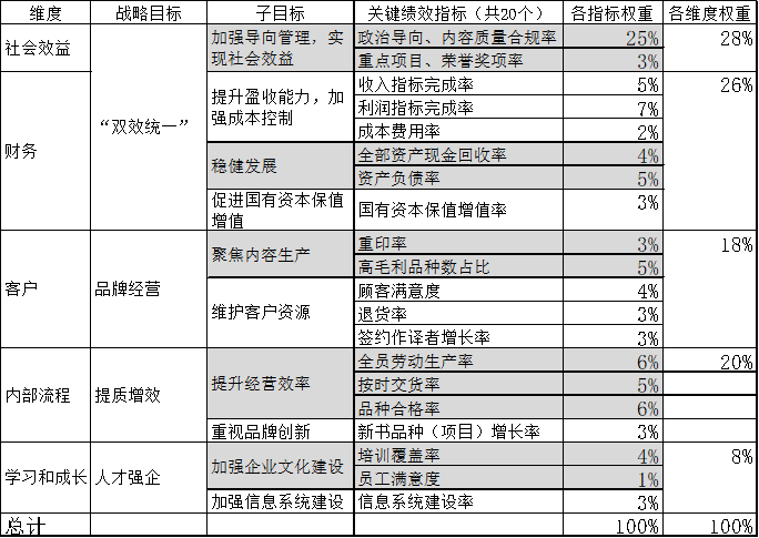 建立關(guān)鍵績(jī)效指標(biāo)體系需充分考慮現(xiàn)狀,選擇反映出版行業(yè)特性、可操作性強(qiáng)、并最終能促成戰(zhàn)略目標(biāo)實(shí)現(xiàn)的關(guān)鍵績(jī)效指標(biāo)。