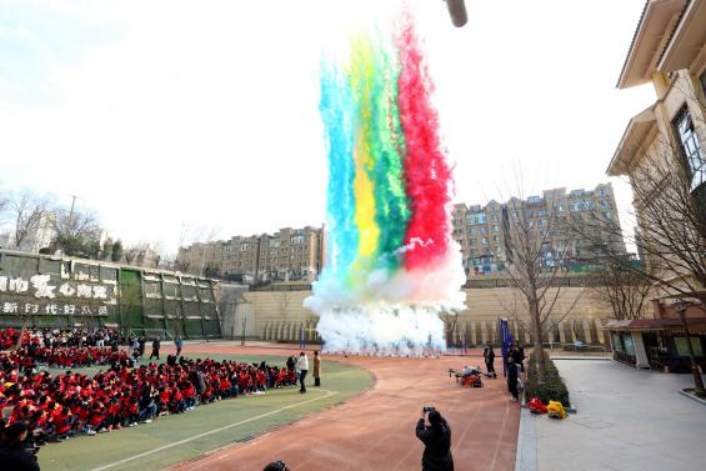 開幕式在學(xué)校舞蹈社團(tuán)的精彩演繹中緩緩啟幕,靈動(dòng)舞姿與科技感旋律交織共振,將少年學(xué)子的蓬勃朝氣與科技賦能的現(xiàn)代魅力深度融合,瞬間點(diǎn)燃全場(chǎng)熱情,盡顯青春活力與創(chuàng)新韻味。山水城小學(xué)史超校長(zhǎng)在致辭中深刻闡釋本屆科技周核心理念,強(qiáng)調(diào)“奇點(diǎn)”既是科學(xué)探索的初心起點(diǎn)、創(chuàng)意迸發(fā)的靈感瞬間,更是學(xué)子逐夢(mèng)啟航的嶄新舞臺(tái)。她寄語(yǔ)全體同學(xué)以好奇為帆、以探索為槳,勇探科技藍(lán)海,在求知求索中汲取智慧力量,在實(shí)踐創(chuàng)新中收獲成長(zhǎng)蛻變。致辭尾聲,史校長(zhǎng)鄭重宣布科技周正式開幕,剎那間七彩禮炮絢爛綻放,大型無(wú)人機(jī)凌空翱翔、靈動(dòng)穿梭,光影與活力交織,現(xiàn)場(chǎng)氛圍瞬間推向巔峰。