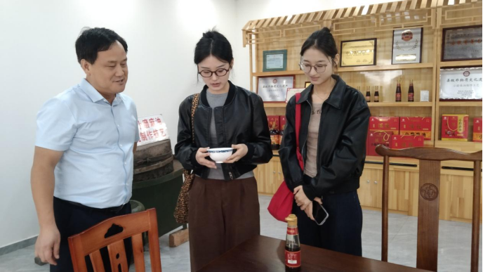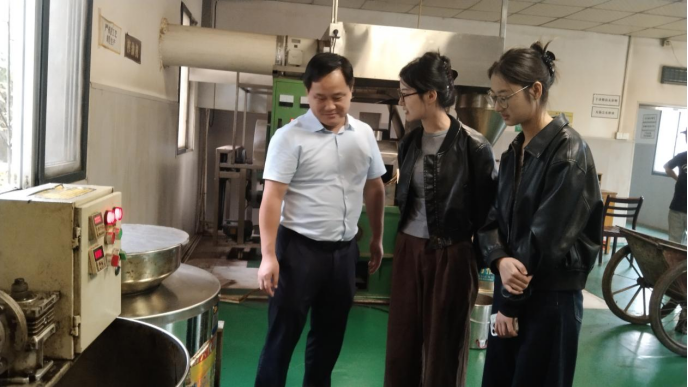 在梅沖益香糧油公司,調(diào)研團(tuán)隊(duì)細(xì)致觀摩了小磨麻油的傳統(tǒng)制作工藝流程,并就其歷史淵源、技藝特點(diǎn)、傳承現(xiàn)狀以及市場(chǎng)推廣等情況,與企業(yè)負(fù)責(zé)人及非遺傳承人進(jìn)行了座談。同學(xué)們對(duì)該公司在堅(jiān)守傳統(tǒng)工藝精髓的同時(shí),積極探索市場(chǎng)化路徑,使老技藝煥發(fā)新生機(jī)的做法表現(xiàn)出濃厚興趣,并圍繞非遺品牌建設(shè)、傳播策略等提出了專業(yè)見解。