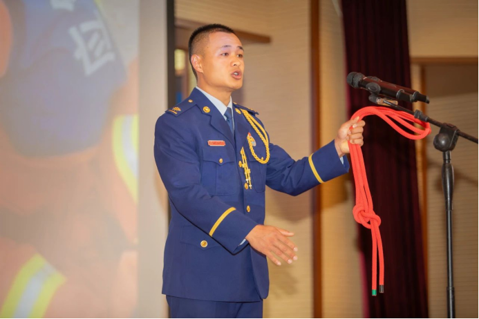 保山支隊(duì)升陽(yáng)路特勤站消防員王鴻以《一根繩子的故事》為題,回顧了入隊(duì)后以繩救人、以繩自救的難忘救援經(jīng)歷,讓大家深刻感悟到一根救援繩不僅是生命之繩、安全之繩,更是消防隊(duì)伍的“十六字”準(zhǔn)繩。