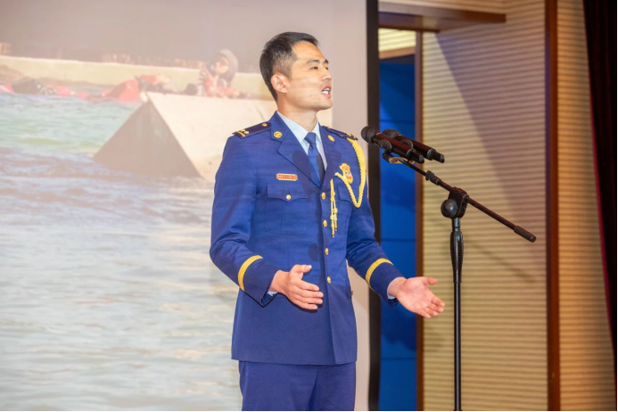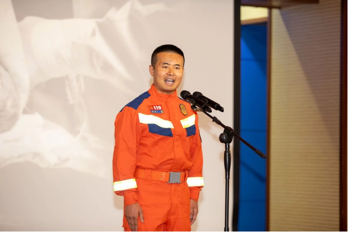 怒江支隊(duì)怒江路消防救援站副站長(zhǎng)錢鑫以《青出于藍(lán)》為題,用身邊的青年榜樣拼搏比武賽場(chǎng)、沖鋒救援一線的感人事跡,動(dòng)情講述了一批批時(shí)代“新藍(lán)”接過(guò)歷史的接力棒、書寫“青出于藍(lán)而勝于藍(lán)”的動(dòng)人故事。