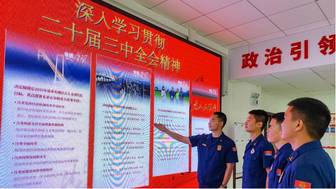 總隊(duì)黨委高度重視此次教育培訓(xùn)工作,專題召開會(huì)議研究部署,主要領(lǐng)導(dǎo)全程跟進(jìn)給與具體指導(dǎo)。教育培訓(xùn)采取集中動(dòng)員、專家輔導(dǎo)、視頻講座、個(gè)人自學(xué)、學(xué)習(xí)研討交流等方式組織實(shí)施。在原原本本、逐字逐句學(xué)習(xí)研讀黨的二十屆三中全會(huì)重要文件和輔導(dǎo)讀本的基礎(chǔ)上,邀請(qǐng)中共云南省委宣講團(tuán)成員和昆明理工大學(xué)馬克思主義學(xué)院教授到隊(duì)輔導(dǎo),集中觀看黨的二十屆三中全會(huì)新聞發(fā)布會(huì)實(shí)況和中央黨校全會(huì)精神解讀視頻,組織參訓(xùn)干部緊貼崗位實(shí)踐開展學(xué)習(xí)研討。培訓(xùn)中,全體參訓(xùn)學(xué)員在當(dāng)前國(guó)債項(xiàng)目推進(jìn)、比武籌備、新訓(xùn)啟動(dòng)等各項(xiàng)任務(wù)非常繁重的情況下,克服工學(xué)矛盾,全員按時(shí)到課、集中精力學(xué)習(xí),注重從從習(xí)近平總書記重要講話和全會(huì)精神中學(xué)思想、明方向、找答案、悟方法,發(fā)揮了黨員干部學(xué)在前、站排頭、走前列的示范引領(lǐng)作用,大家對(duì)全會(huì)精神的理解把握更加全面系統(tǒng),運(yùn)用黨的創(chuàng)新理論指導(dǎo)實(shí)踐、推動(dòng)工作的能力有了新的增強(qiáng)。