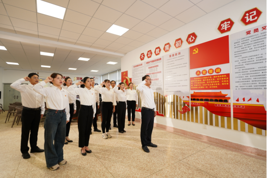 黨委書記朱建帶領(lǐng)青年黨員教師宣誓