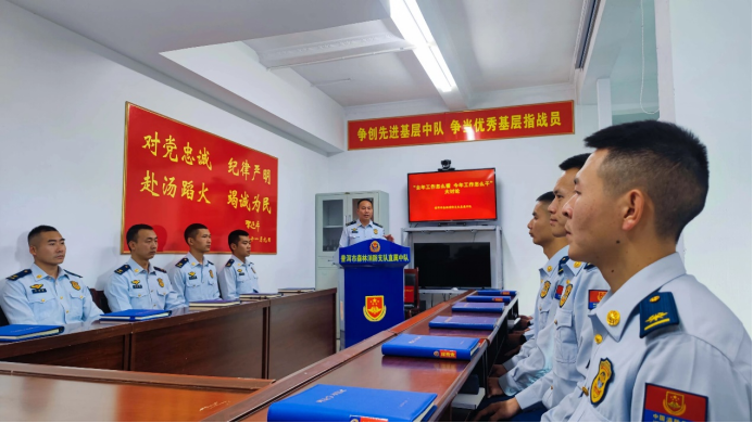 會(huì)當(dāng)凌絕頂,才能一覽眾山小,站得高才能看得遠(yuǎn),謀得深才能想得全。為幫助駐防分隊(duì)進(jìn)一步認(rèn)清形勢(shì)、理清思路、研究對(duì)策,新年伊始,支隊(duì)劉東君政委帶蹲點(diǎn)調(diào)研工作組深入駐防分隊(duì)調(diào)研幫建,面對(duì)面教方法、傳經(jīng)驗(yàn),召開(kāi)精準(zhǔn)抓建“講真話實(shí)話心里話、論險(xiǎn)點(diǎn)難點(diǎn)優(yōu)缺點(diǎn)”討論會(huì),盡心竭力幫助基層解決實(shí)際困難,實(shí)打?qū)崬殛?duì)伍精準(zhǔn)抓建“問(wèn)診把脈”,為駐防分隊(duì)進(jìn)一步找準(zhǔn)工作重點(diǎn)、堅(jiān)定信心,給隊(duì)伍新年度精準(zhǔn)抓建注入“新質(zhì)驅(qū)動(dòng)力”。龍頭怎么擺,龍尾就怎么甩,謀劃好新年度工作要與上級(jí)黨委要求保持高度一致,充分認(rèn)清當(dāng)前單位所面臨的形勢(shì)、趨勢(shì)和大勢(shì),自覺(jué)對(duì)標(biāo)學(xué)習(xí)、對(duì)表落實(shí),與上級(jí)決策部署做到同頻共振、同向發(fā)力,奮力推動(dòng)駐防分隊(duì)新年度建設(shè)開(kāi)創(chuàng)新局面。