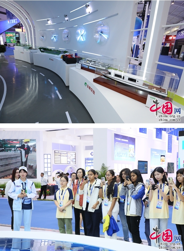 公路波形梁鋼護欄機械化安裝設備、油電雙動力客滾船、新能源航道快艇、VR智能學車模擬器……云南交投集團科技感滿滿。本屆南博會,云南交投集團“發(fā)展綠美通道經(jīng)濟·打造新質(zhì)生產(chǎn)力”主題展區(qū)充分利用全息投影、柔性LED、數(shù)字媒體、聲光電觸等技術,全面展示該集團發(fā)展綠美通道經(jīng)濟的新實踐和新成效。