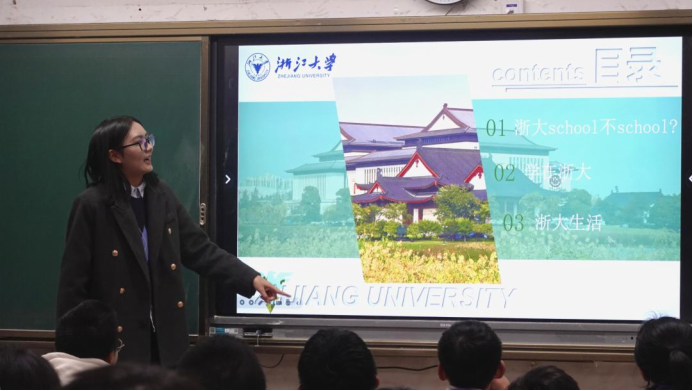 心定志堅(jiān),篤行不怠。施寒丹分享了浙江大學(xué)豐富的學(xué)術(shù)資源和多元的社團(tuán)活動(dòng),并表示正是得益于高中時(shí)期國旗班的寶貴經(jīng)歷,她能夠內(nèi)心堅(jiān)定豐盈,毅勇無前。她希望自己的求學(xué)經(jīng)歷能幫助安中學(xué)子明確目標(biāo),點(diǎn)燃追逐夢(mèng)想的熱情 。