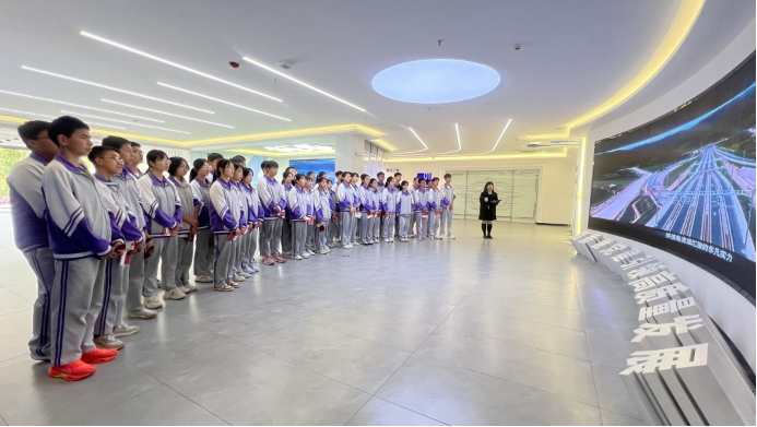 研學首站,同學們走進云南產(chǎn)業(yè)園區(qū)黨群服務中心。站在園區(qū)規(guī)劃沙盤前,數(shù)字光影勾勒出壯闊的產(chǎn)業(yè)藍圖,每一位研學隊員都真切感受到經(jīng)濟發(fā)展的澎湃浪潮和磅礴力量,對家鄉(xiāng)、對祖國未來的經(jīng)濟騰飛充滿了信心與期待。