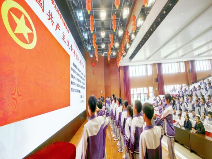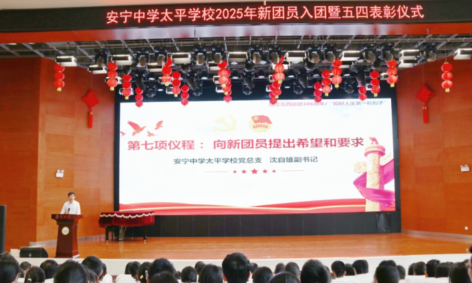 為弘揚“愛國、進步、民主、科學(xué)”的五四精神,引導(dǎo)廣大青年樹立共產(chǎn)主義遠大理想,堅定中國特色社會主義共同理想,堅定聽黨話、跟黨走的政治信念,在強國建設(shè)、民族復(fù)興的歷史潮流中確立正確的人生目標(biāo),為一生的奮斗奠定基石。近日,云南安寧中學(xué)太平學(xué)校隆重舉行“何以理想——青春為中國式現(xiàn)代化挺膺擔(dān)當(dāng)”2025新團員入團暨五四表彰儀式。初三年級和高中部今年新入團的90余名新團員、100余名團員代表及學(xué)校黨組織黨員干部代表共同參與并見證了青年們追求政治進步的神圣時刻。