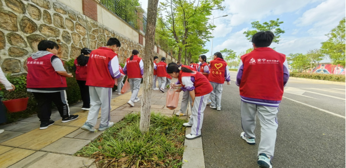 儀式最后,校團委還與所在的玉龍灣社區(qū)聯(lián)動,聯(lián)合組織團員開展五四青年志愿服務(wù)活動。在環(huán)校路上,團員青年們頂著驕陽,一路撿拾路面及隱藏在綠化帶中的垃圾,不怕苦、不怕累,積極參與共建美好家園的行動中。青春“紅馬甲”以實際行動傳遞著“奉獻、友愛、互助、進步”的志愿精神,青春之光也在服務(wù)社會的火熱實踐中愈發(fā)明亮。