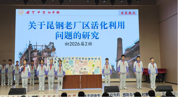 “研”途皆知識(shí),“學(xué)”中悟成長(zhǎng)。銹跡斑斑的高爐前,少年們觸摸著冰涼的鋼鐵脈絡(luò);泛黃的廠志檔案庫中,筆尖沙沙記錄三代人的奮斗年輪。2025年1月開始,安寧中學(xué)初中部八年級(jí)(2)班研究小隊(duì)歷時(shí)四個(gè)月,深入昆鋼老廠區(qū)開展“工業(yè)遺產(chǎn)活化利用”社會(huì)實(shí)踐,用200份市民問卷、12場(chǎng)專業(yè)訪談、4份政府建議書,為城市更新交出青春答卷。