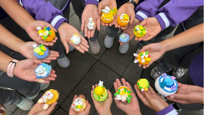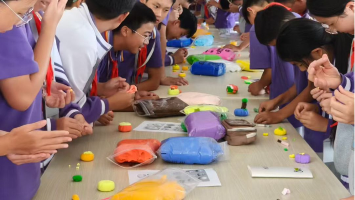 師生們歡聚一堂,在詩(shī)詞吟詠中重溫中秋文化內(nèi)涵,在協(xié)作互動(dòng)中積蓄成長(zhǎng)力量。同學(xué)們用超輕粘土捏出了樣式各異的團(tuán)圓月餅,團(tuán)圓味兒超足。