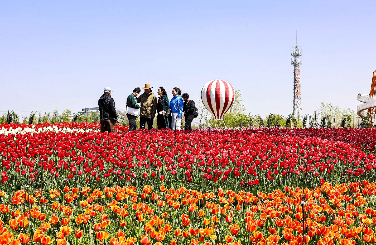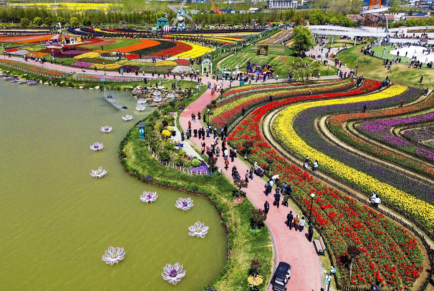 江蘇省鹽城市大豐區(qū)荷蘭花海景區(qū)300多個品種郁金香綻放,五彩花海如調(diào)色盤傾瀉,吸引各地游客如約而至打卡留影。景區(qū)以“種球公司+基地+農(nóng)戶”全產(chǎn)業(yè)鏈模式,不僅帶來賞花之樂,更鋪就村民致富路,讓鮮花經(jīng)濟(jì)綻放鄉(xiāng)村振興新活力。