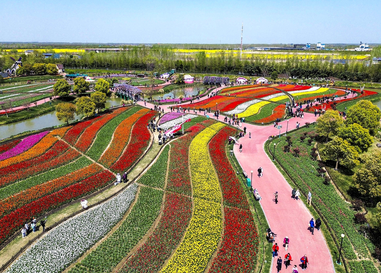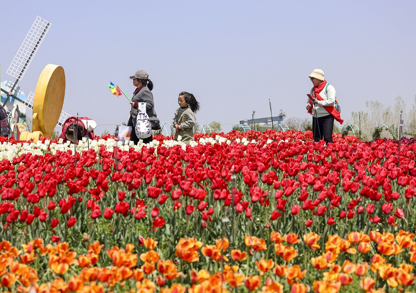 游客在江蘇省鹽城市大豐區(qū)荷蘭花海景區(qū)賞花游玩