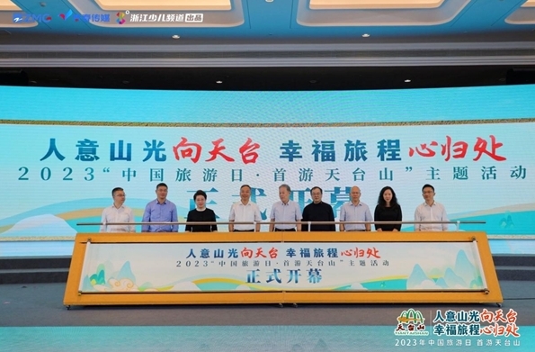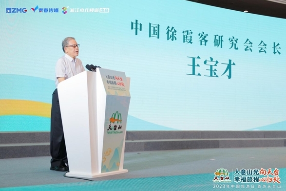 中國徐霞客研究會會長王寶才,中國作家協(xié)會全委、中國自然資源作協(xié)主席陳國棟,浙江省自然資源廳二級巡視員、浙江省徐霞客研究會會長、中國徐霞客詩歌散文獎組委會主任潘俊國,浙江省自然資源廳二級巡視員、浙江省徐霞客研究會副會長兼秘書長趙建平,天臺縣委書記楊玲玲,省文旅廳科技與教育處處長鄭妮,臺州市自然資源和規(guī)劃局局長李震杰,臺州市文化和廣電旅游體育局局長蔡文富,天臺縣委副書記、縣長王欣東共同啟動2023年“中國旅游日·首游天臺山”主題活動。多位省級部門領(lǐng)導和專家、省外嘉賓、臺州市領(lǐng)導、天臺縣四套班子、以及其他縣四套班子領(lǐng)導出席開幕式。