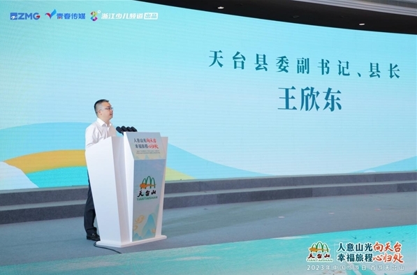 天臺縣委副書記、縣長王欣東向蒞臨活動的領(lǐng)導嘉賓表示熱烈歡迎和衷心感謝。他說,四百多年前,徐霞客鐘情于天臺山,三度登臨,寫下兩篇游記,成就了“中國旅游日”,為天臺留下了寶貴的文化財富。近年來,我們厚植天臺山文化旅游資源,聚焦“美、新、妙”,推動文旅深度融合,用文化點亮旅游,以旅游傳播文化。本次活動,我們精心準備了豐富的旅游產(chǎn)品,并向全國人民送出“半價游景區(qū)”等系列大禮包。誠邀五湖四海的朋友們卸下匆忙、拾起行囊,共赴天臺山,循著“游圣”腳步,飽覽天臺山水之美,感悟天臺山文化之妙。