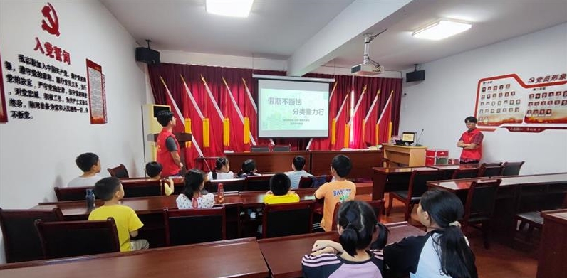 近日,浙江省湖州市善璉鎮(zhèn)2023年大學生服務(wù)“春泥計劃”正式開班,旨在豐富孩子們的假期學習生活,過一個充實快樂有意義的暑假。為了進一步宣傳垃圾分類知識,提高家庭垃圾分類準確性,善璉鎮(zhèn)垃圾分類辦聯(lián)合善璉鎮(zhèn)團委、婦聯(lián)、皇墳村村委會,舉辦了“假期不斷檔 分類童力行”主題教育活動,讓孩子們在看一看、玩一玩、動一動的過程中認識垃圾分類。